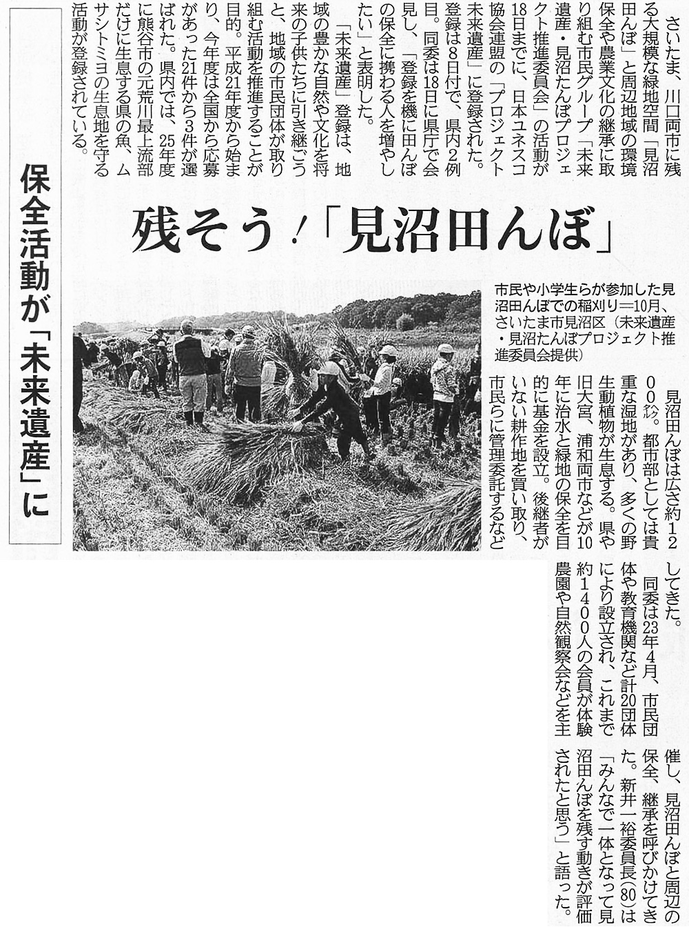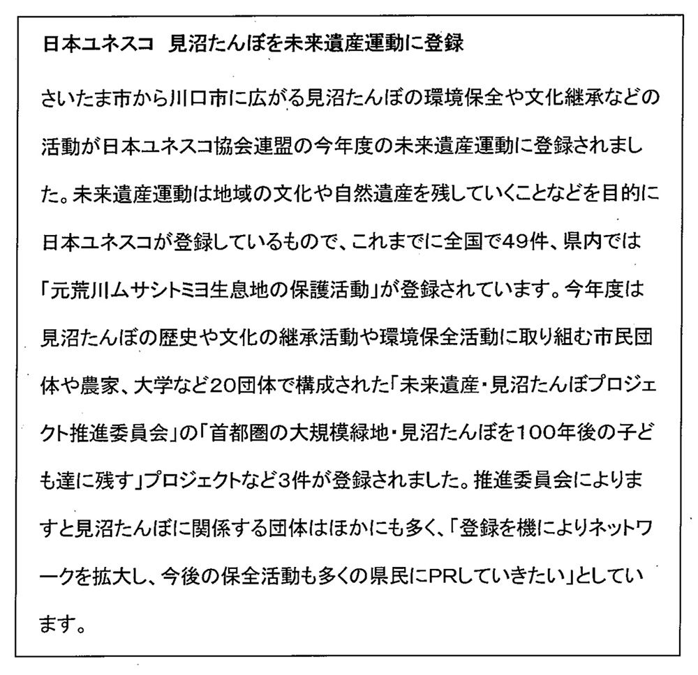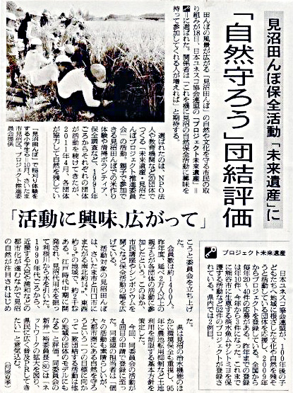 今後は、「未来遺産としての目標感」のもとに、個々の市民団体・農家・教育機関の活動の充実を基本に、参加団体の多様な活動を相互に協働・連携しながら、未来に向けての見沼たんぼ地域の多様な魅力の向上のため、連合機関として、協働・連携活動や広報活動などを充実していく所存です。